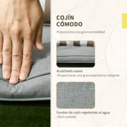Disfruta de las tardes tranquilas bajo el sol con este conjunto de exterior de Outsunny. Compuesto por 2 sillones y una mesa, es perfecto para relajarte en compañía. Con un marco de acero duradero para la estructura de la base, cada pieza está envuelta en ratán PE, lo que garantiza la resistencia y la protección contra los elementos templados y, al mismo tiempo, es fácil de limpiar. Es un conjunto perfecto para todos los que quieran disfrutar al aire libre mejor que nunca. Características – Conjunto de 3 muebles, compuesto por 2 sillones y una mesa de centro – Adecuado para uso en interiores y exteriores – Fabricada con una robusta estructura de acero y recubierta de ratán sintético para mayor elegancia – Mesa de centro con estructura y encimera de metal y estante inferior de ratán PE – Los cojines del asiento y los 2 decorativos aportan mayor comodidad al conjunto – Las fundas de los cojines se pueden quitar para limpiar – Requiere montaje Especificaciones – Color: negro, marrón claro, gris, dorado y blanco – Material: ratán PE, acero, poliéster – Medidas de los sillones: 59x71x80 cm (LxANxAL – Medidas del asiento: 52×52 cm (LxAN – Altura del asiento: 34 cm – Medidas de la mesa: 46x46x48 cm (LxANxAL – Carga máxima: 120 kg (cada asiento y 50 kg (mesa – Referencia: 863-122V00KK