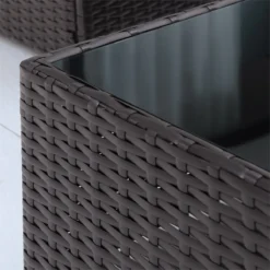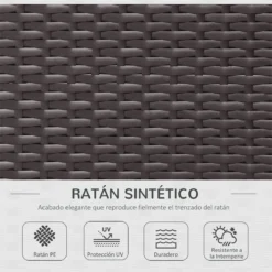 ¡Añádele elegancia a tu jardín con este conjunto de muebles contemporáneo! Con este conjunto de muebles de Outsunny tu terraza brillará por si sola. Consta de 7 piezas que puedes recolocar según tus necesidades. Crea la combinación perfecta para tu jardín. Decorativo, funcional y duradero. Este conjunto crea un espacio acogedor para que puedas disfrutar con tu familia y amigos. Características – Moderno y elegante. Consta de 4 sillones sin brazos, 2 sofás de esquina y una mesita pequeña – Ideal para jardín, patio y terraza – Trenzado de ratán sintético de alta calidad. Resistente y duradero – Estructura de hierro galvanizado con recubrimiento en polvo – Mesa de centro con tapa de vidrio templado. Sólida y fácil de limpiar – Incluye los cojines del respaldo, del asiento y los de decoración de la foto – Se puede quitar la funda de todos los cojines, y así lavarlos cómodamente – Incorpora una hebillas para fijar los cojines en las sillas – Ligero y fácil de mover – Con almohadillas de goma ajustables en la base Especificaciones – Color: Marrón oscuro – Material: Acero y ratán PE – Dimensiones del sofá esquinera: 75x75x62.5cm (LxANxAL – Dimensiones del sofá central sin apoyabrazos: 75x65x62.5cm (LxANxAL – Dimensiones de la mesita de centro: 73x65x32cm (LxANxAL – Dimensiones de la almohada: 40x40cm (LxAN – Grosor del vidrio templado: 5 mm – Peso neto: 67.5 kg – Capacidad máxima de carga: 160 kg mesa: 70 kg – Referencia: 860-020 – Este producto viene con 3 paquetes.