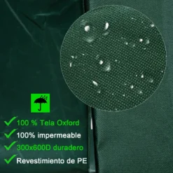 ¿Quieres proteger tu mobiliario de exterior contra el mal tiempo? Con esta funda protectora de Outsunny podrás cubrir cualquier tipo de mueble, especialmente sillas, bancos o sofás. Perfecta para proteger de la lluvia, la nieve, el polvo, la resina de los árboles, los excrementos de pájaros o cualquier tipo de factor meteorológico que pudiera deteriorar tus muebles. Viene con un cordón elástico en la parte inferior que asegura que la funda se ajuste perfectamente a tus muebles. Características – Esta funda para muebles de exterior está hecha de tela Oxford 600D – Protege a tus muebles de la intemperie, polvo, los rayos UV, resina de los árboles, decoloración y excrementos de pájaros – Adecuada para proteger los muebles de tu terraza, jardín, patio o cualquier otro espacio al aire libre – Tiene un cordón elástico en la parte inferior para ajustarse a tus muebles – Fácil de limpiar con un paño húmedo o enjuagando con agua y luego dejando secar al sol – Cuando no está en uso, se puede plegar y no ocupa apenas espacio – Rápido de quitar para un fácil almacenamiento – No requiere montaje Especificaciones – Color: verde – Material: tela Oxford (100% poliéster – Medidas totales: 245x165x55 cm (LxANxAL – Referencia: 02-0179