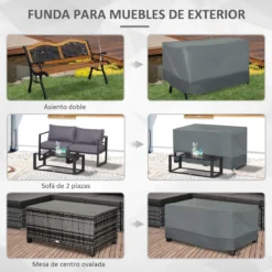 Outsunny Funda Protectora Para Muebles De Jardín Tela Oxford 600D Impermeable Cubierta De Muebles De Mesas Sillas Sofás Exterior Con Cordón Y Hebilla 190,5x72x76 Cm Gris