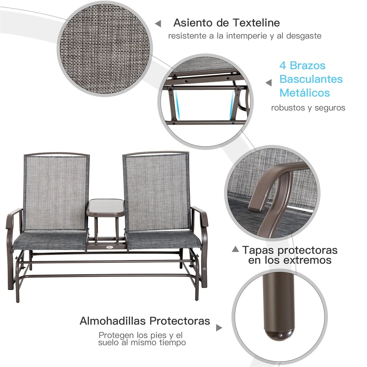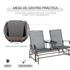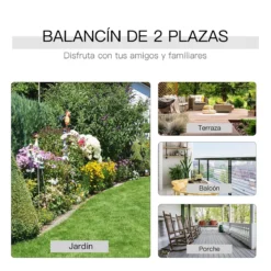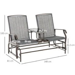 Outsunny Mecedora De 2 Plazas Banco Balancín Tipo Silla Basculante De Jardín O Patio De Metal Y Tela Texteline Para Exterior 148x81x100 Cm