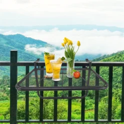 - – MESITA PARA BALCÓN: Ideal para tener una mesita en el balcón sin ocupar demasiado espacio. La mesa perfecta para aquellos balcones pequeños o estrechos – TOTALMENTE AJUSTABLE: El brazo para colgar se puede ajustar de 2 a 11,5 cm para adaptarse a los diferentes anchos de barandillas. La altura de la encimera también se puede ajustar en 3 posiciones diferentes – ESTRUCTURA RESISTENTE: Esta mesa colgante rectangular para balcón está hecha de metal resistente, con pintura con recubrimiento en polvo, para mayor resistencia a la intemperie y a la corrosión – FÁCIL MANTENIMIENTO: Esta mesa no requiere apenas de mantenimiento y es fácil de limpiar, basta con pasarle un paño húmedo – MEDIDAS TOTALES: 60×56,5×45 cm (LxANxAL; Peso máximo soportado: 30 kg; Fácil de montar e instalar en la barandilla de tu balcón