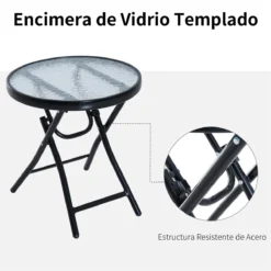 - – CONJUNTO DE JARDÍN: Este elegante juego de muebles de jardín está compuesto por 2 mecedoras plegables y una mesa auxiliar pequeña redonda. El complemento perfecto para tu patio, terraza, balcón o cualquier espacio al aire libre – SILLAS BASCULANTES: Las 2 sillas mecedoras de acero de perfil bajo te permiten balancearte mientras descansas. Pueden soportar hasta 120 kg cada una y tienen en las patas delanteras para mayor estabilidad – DISEÑO PLEGABLE Y ERGONÓMICO: Su diseño con cuerdas elásticas de los bordes ayuda a reducir la tensión y el estrés muscular. Tanto las mecedoras como la mesa se pueden plegar para facilitar su transporte o almacenaje – MESA DE CRISTAL: La mesa redonda de este conjunto es plegable. Con estructura de acero y encimera de vidrio templado. Ideal para tener a mano un libro para leer mientras te balanceas o unos refrescos – MEDIDAS TOTALES: Medidas de la mesa: Ø46×49 cm (DiámxAL; Medidas de la mecedora: 68x90x106 cm (LxANxAL; Carga máxima: 120 kg (silla y 40 kg (mesa