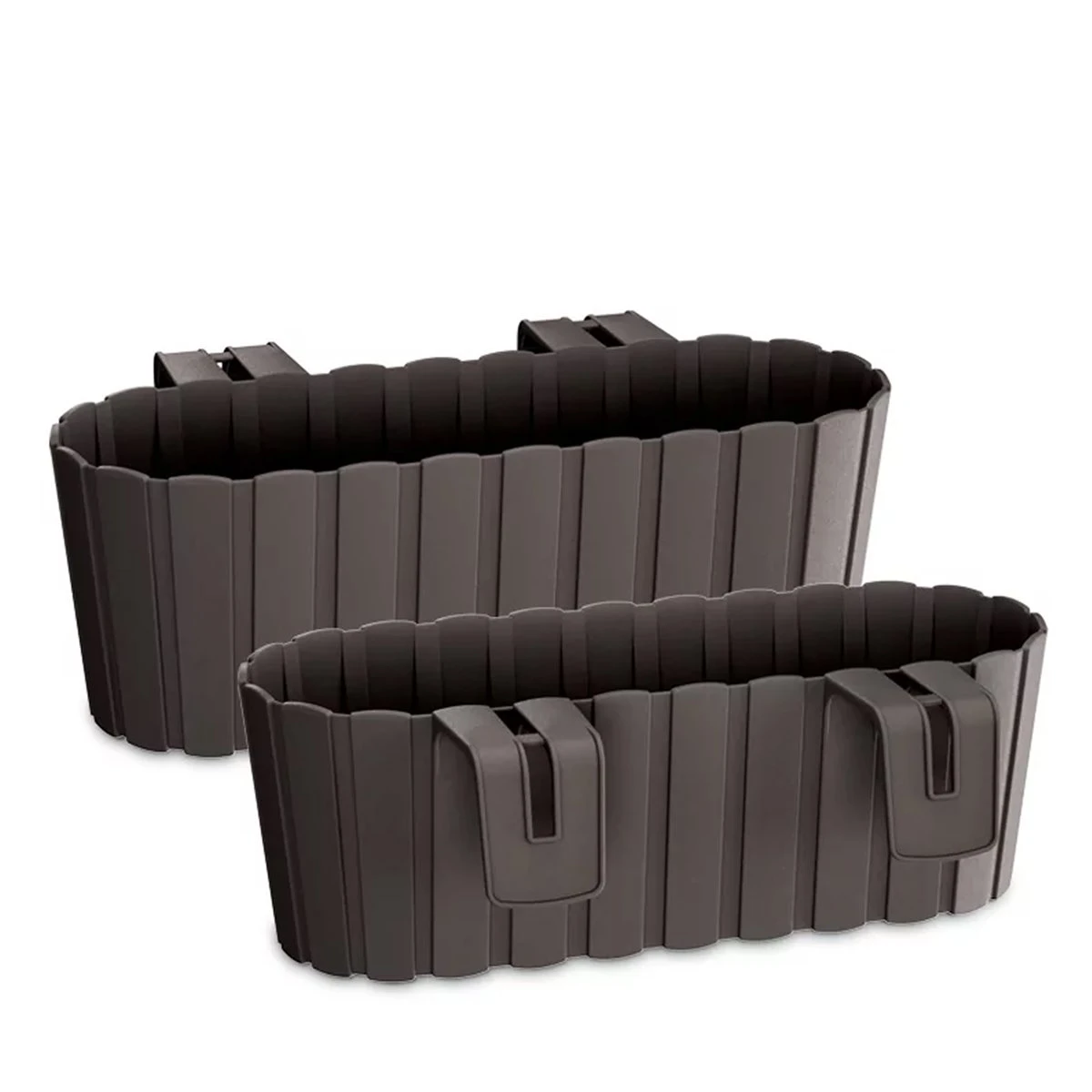Jardinera para balcón de la colección BOARDEE HOOKDimensiones: 383x212x130MarrónIncorpora ganchos para sujetarse firmemente a barandillas