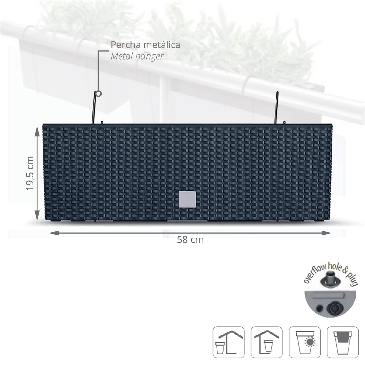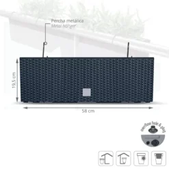 Jardinera Para Balcón De La Colección Rato Case W_x000D_Dimensiones: 580X180X195_x000D_Antracita_x000D_Incorpora Ganchos Para Sujetarse Firmemente A Barandillas