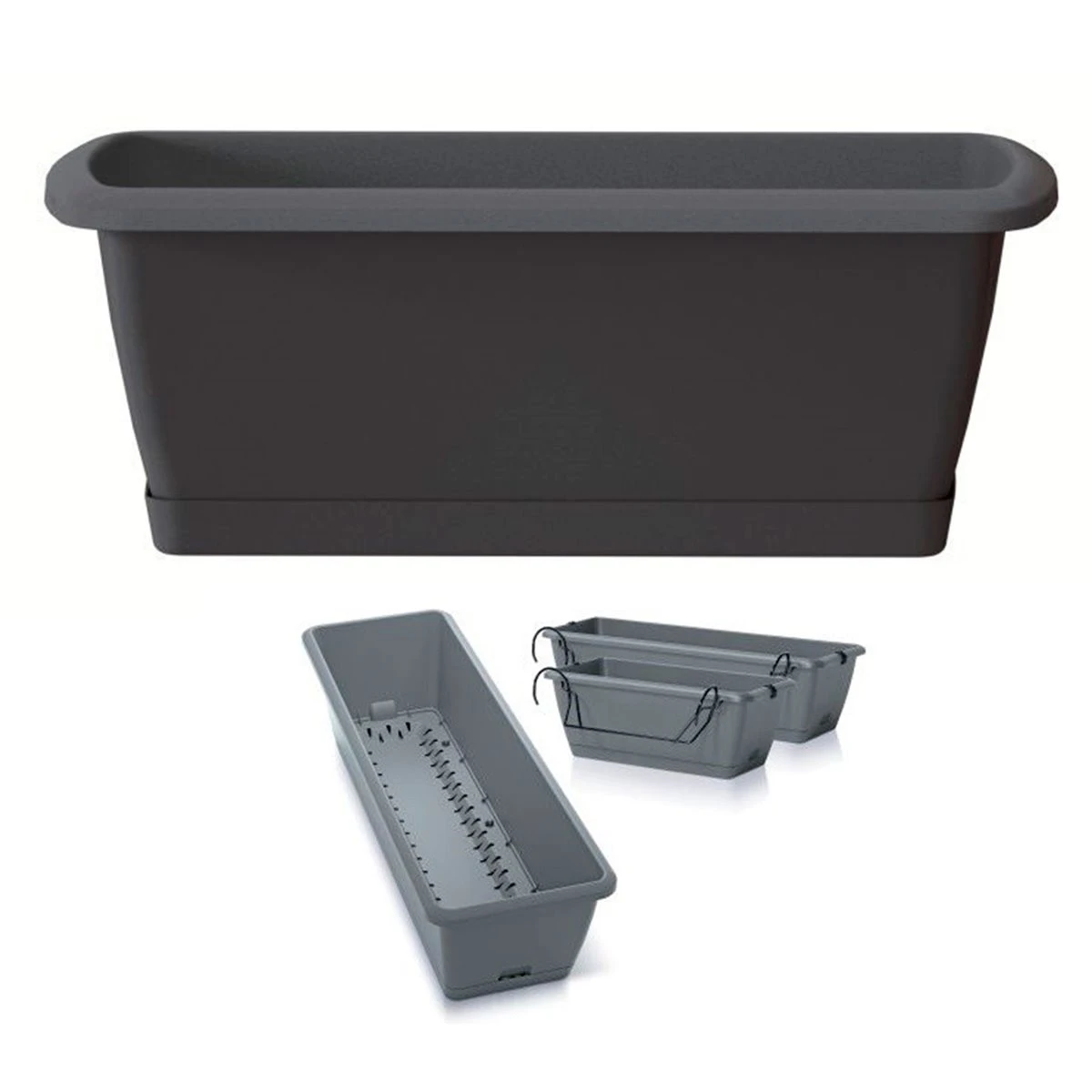 Prosperplast Jardinera Para Balcón Respana Easycare, Incluye Ganchos, Dimensiones (Mm) 593X190X140, Color Antracita