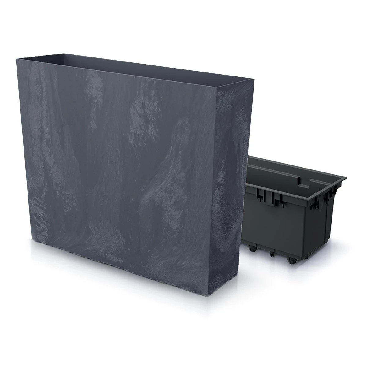 Jardinera Para Balcón De La Colección Urbi Case Beton Effect_x000D_Dimensiones: 580X180X498_x000D_Antracitaexcelente Para Decoración En Interiores, Pero También Es Apta Para Ubicación En Exteriores. Perfecto Para Salones Domésticos, Terrazas, Jardines De Invierno O Patios, Fabricada En Plástico De Alta Calidad._x000D_Set 2 En 1: Macetero Que Incluye Un Depósito Interior Adaptado Que Reduce La Cantidad De Tierra Necesaria._x000D_Con Depósito