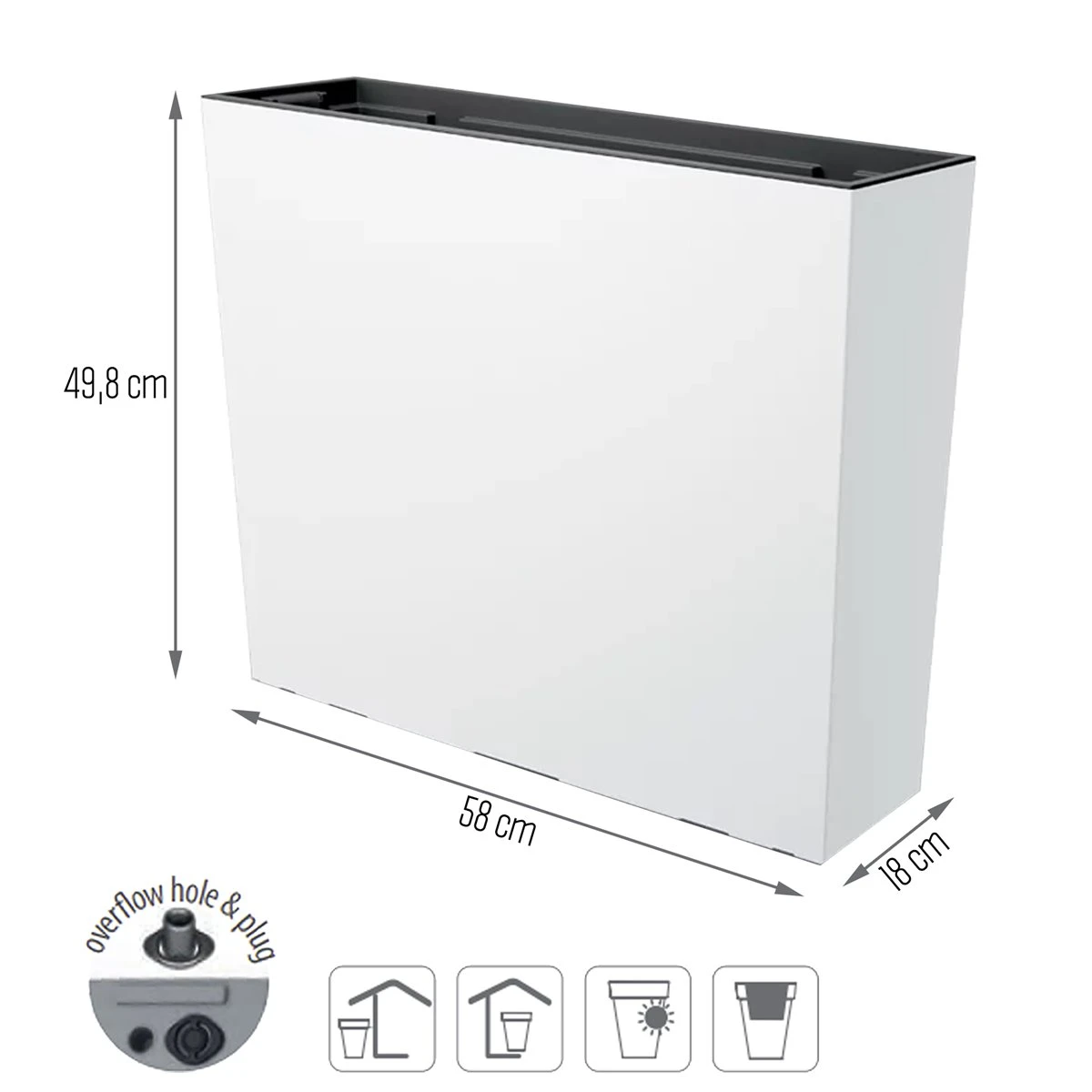 Prosperplast Jardinera Para Balcón Urbi Case , Con Depósito, Dimensiones (Mm) 580X180X498, Color Blanco