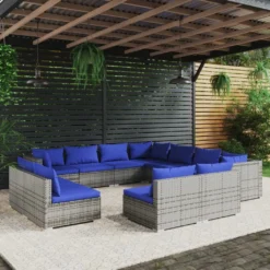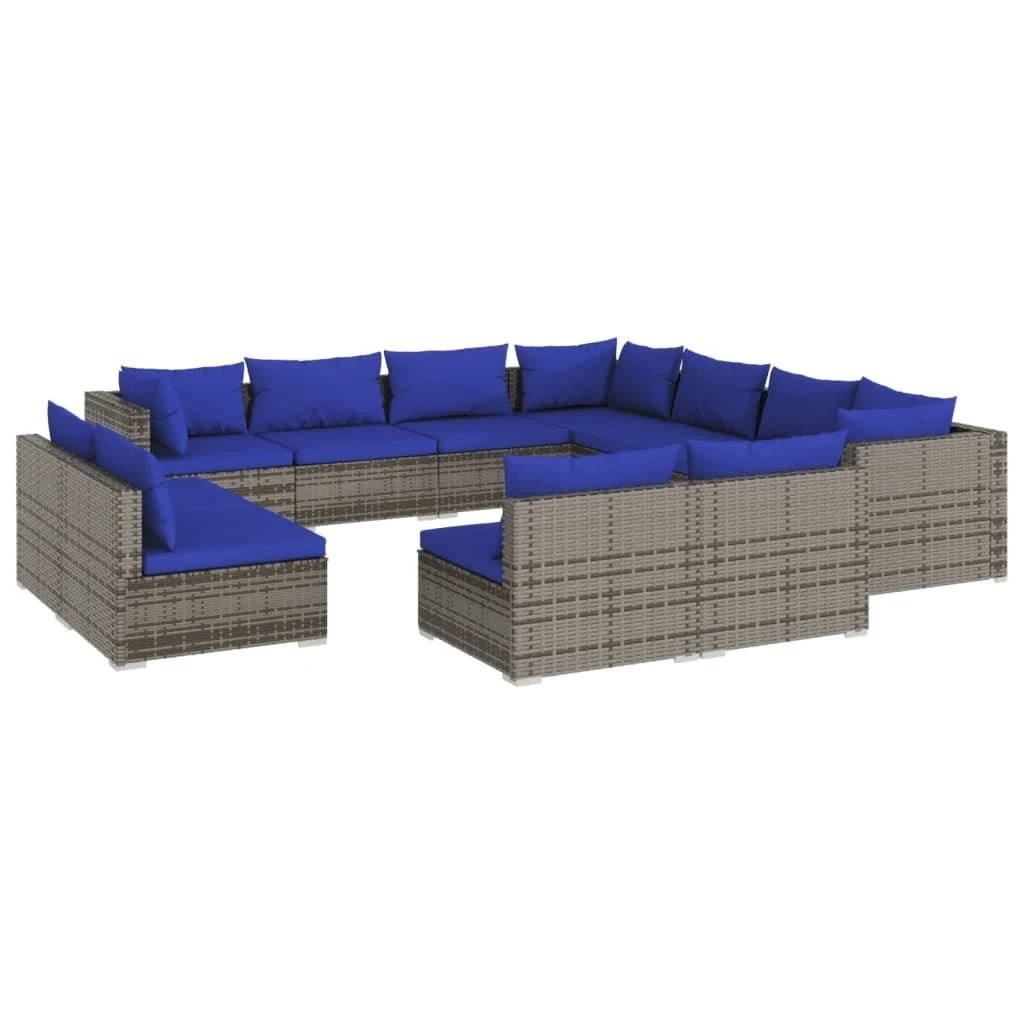 Este moderno juego de muebles de jardín de ratán sintético de 11 piezas está destinado a ser un gran aporte a tu espacio al aire libre. Añade un toque de elegancia moderna a tu patio, balcón o jardín con su diseño sobrio y elegante. Material de primera calidad: El set de muebles de patio ha sido diseñado con ratán PE impermeable, por lo que es resistente y adecuado para usar a diario al aire libre.Estructura robusto: Las estructuras de acero con recubrimiento en polvo garantizan la robustez y la estabilidad.Asientos cómodos: Los cojines suaves y acolchados gruesos brindan una comodidad óptima para tu exteriorDiseño flexible para cualquier ocasión: Estos muebles de jardín modernos se pueden separar y organizar de diversas maneras para adaptarse a tu espacio al aire libre, lo que te permite conversar agradablemente con familiares o amigos en tu encantador patio, jardín, junto a la piscina, etc. Nota:Para prolongar la vida de tus muebles de exterior, te recomendamos que los protejas con una funda impermeable. Color: GrisColor del cojín: Azul oscuroMaterial: Ratán PE, acero con recubrimiento en polvo, plásticoMaterial del cojín/almohadón: Tela (100% poliésterSofá central:Dimensiones de cada sofá central: 70 x 70 x 60,5 cm (largo x ancho x altoProfundidad del asiento: 63 cmAltura del asiento desde el suelo: 30 cmDimensiones del cojín de asiento: 70 x 63 x 3 cm (largo x ancho x grosorDimensiones del almohadón de respaldo: 70 x 40,5 cm (largo x anchoSofá esquinero:Dimensiones de cada sofá esquinero: 70 x 70 x 60,5 cm (largo x ancho x altoProfundidad del asiento: 63 cmAltura del asiento desde el suelo: 30 cmDimensiones del cojín de asiento: 63 x 63 x 3 cm (largo x ancho x grosorDimensiones del almohadón de respaldo grande/pequeño: 63/53 x 40,5 cm (largo x anchoRequiere montaje: SíLa entrega contiene:8 x Sofás centrales3 x Sofá esquinero11 x Cojines de asiento13 x Cojines de respaldo