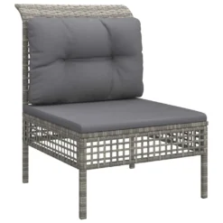 ¡Disfruta de un agradable café en el espacio al aire libre de la casa con este juego de muebles para jardín! Es un aporte perfecto para el jardín y la terraza, y crea además una impresión duradera. Material resistente a la intemperie: El ratán PE, también conocido como ratán sintético, es resistente a la intemperie y fácil de limpiar. La parte exterior se mantiene hermosa durante mucho tiempo. Ofrece una gran calidad, comodidad y aspecto estético.Estructura robusta: La estructura de acero con recubrimiento en polvo hace que el juego de muebles para exterior sea resistente y estable para usar a diario al aire libre.Cómodo asiento: Los respaldos aportan un plus de comodidad al juego de muebles de patio. Además, los cojines gruesos y acolchados proporcionan comodidad al asiento.Diseño modular: Cada artículo es flexible y fácil de mover, por lo que puedes combinarlo con otros segmentos modulares de nuestra tienda web para crear tus propias configuraciones personales de juegos de muebles de jardín. Nota:Para asegurarte de que tus muebles de exterior se mantengan hermosos, recomendamos protegerlos con una funda impermeable. Sofá esquinero de jardín:Color: GrisMaterial: Ratán PE, acero con recubrimiento en polvoDimensiones: 65 x 65 x 75 cm (ancho x profundo x altoAnchura del asiento: 55 cmProfundidad del asiento: 55 cmAltura del asiento desde el suelo: 32 cmCapacidad máxima de carga: 110 kgDiseño de cuadrículaSofá central de jardín:Color: GrisMaterial: Ratán PE, acero con recubrimiento en polvoDimensiones: 55 x 65 x 75 cm (ancho x profundo x altoAnchura del asiento: 55 cmProfundidad del asiento: 55 cmAltura del asiento desde el suelo: 32 cmCapacidad máxima de carga: 110 kgDiseño de cuadrículaCojín:Color: Gris oscuroMaterial: Tela (100% poliésterMaterial del relleno del cojín de asiento: EspumaMaterial del relleno del cojín de respaldo: Fibra de algodónDimensiones del cojín de asiento: 55 x 55 x 3 cm (largo x ancho x grosorDimensiones del cojín de respaldo (grande: 56 x 39 x 10 cm (largo x ancho x grosorDimensiones del cojín de respaldo (pequeño: 48 x 39 x 10 cm (largo x ancho x grosorRequiere montaje: SíLa entrega incluye:3 x Sofás de esquina de jardín4 x Sofás centrales de jardín7 x Cojines de asiento7 x Cojines de respaldo (grande3 x Cojnes de respaldo (pequeño