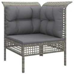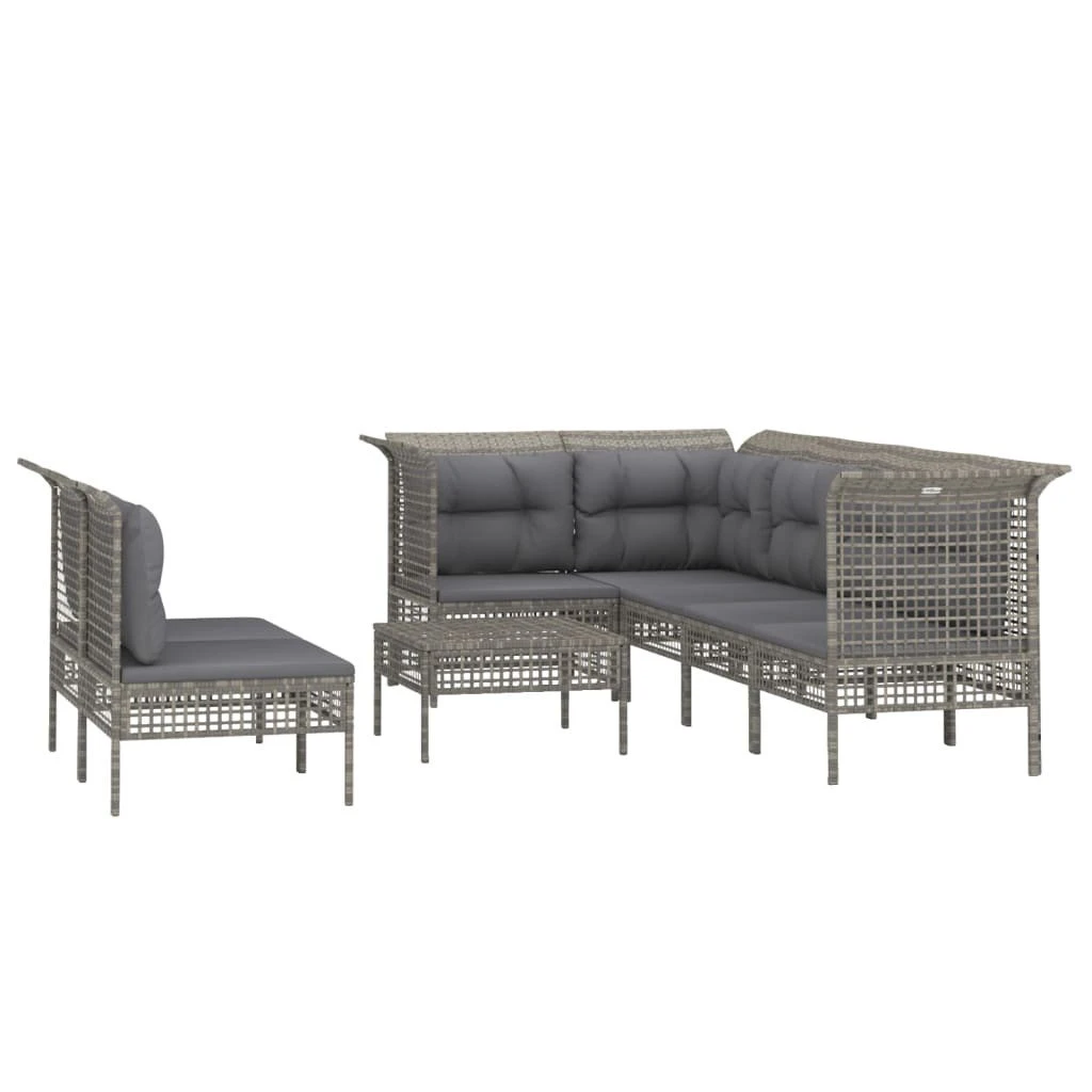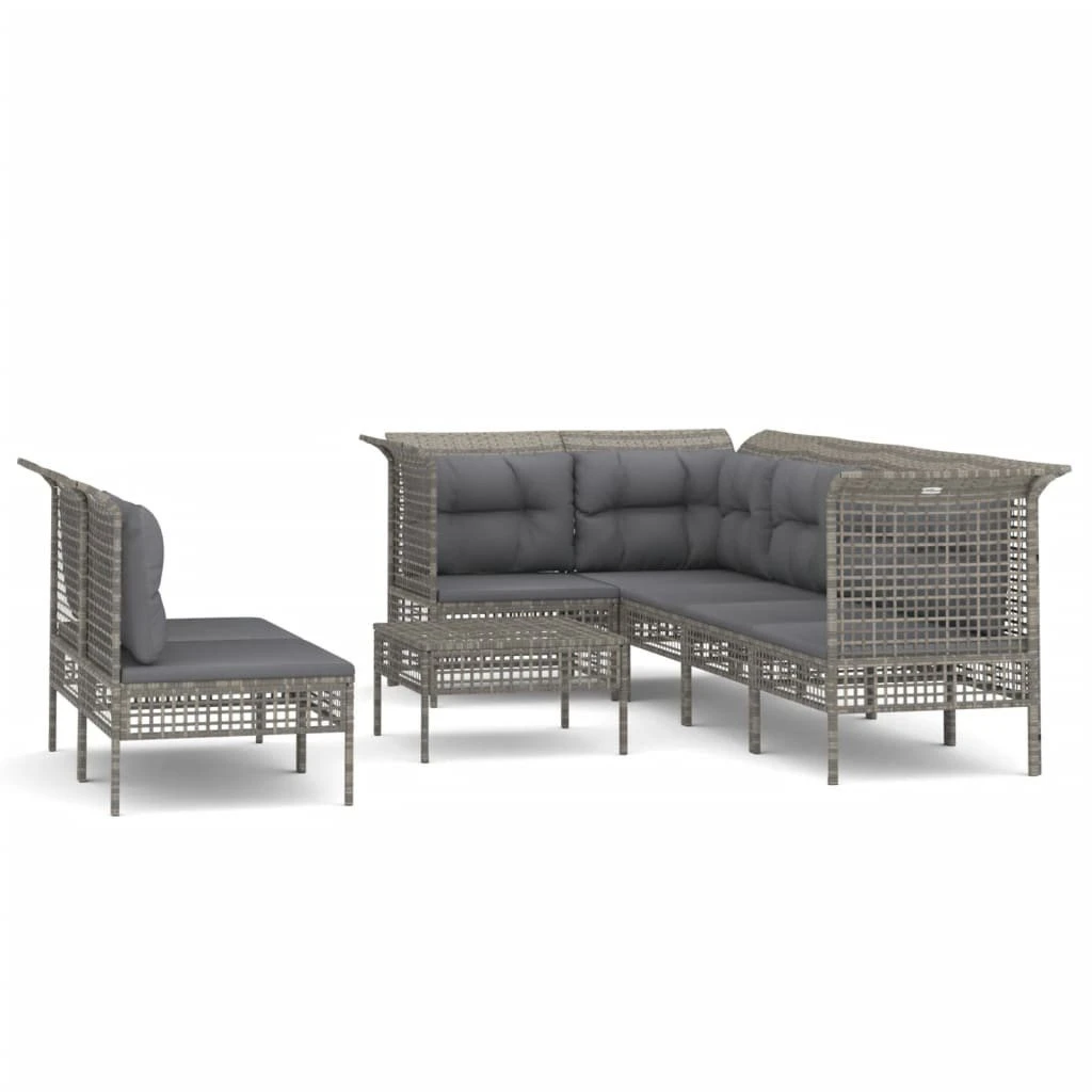 ¡Disfruta de un agradable café en el espacio al aire libre de la casa con este juego de muebles para jardín! Es un aporte perfecto para el jardín y la terraza, y crea además una impresión duradera. Material resistente a la intemperie: El ratán PE, también conocido como ratán sintético, es resistente a la intemperie y fácil de limpiar. La parte exterior se mantiene hermosa durante mucho tiempo. Ofrece una gran calidad, comodidad y aspecto estético.Estructura robusta: La estructura de acero con recubrimiento en polvo hace que el juego de muebles para exterior sea resistente y estable para usar a diario al aire libre.Cómodo asiento: Los respaldos aportan un plus de comodidad al juego de muebles de patio. Además, los cojines gruesos y acolchados proporcionan comodidad al asiento.Diseño modular: Cada artículo es flexible y fácil de mover, por lo que puedes combinarlo con otros segmentos modulares de nuestra tienda web para crear tus propias configuraciones personales de juegos de muebles de jardín. Nota:Para asegurarte de que tus muebles de exterior se mantengan hermosos, recomendamos protegerlos con una funda impermeable. Sofá esquinero de jardín:Color: GrisMaterial: Ratán PE, acero con recubrimiento en polvoDimensiones: 65 x 65 x 75 cm (ancho x profundo x altoAnchura del asiento: 55 cmProfundidad del asiento: 55 cmAltura del asiento desde el suelo: 32 cmCapacidad máxima de carga: 110 kgDiseño de cuadrículaSofá central de jardín:Color: GrisMaterial: Ratán PE, acero con recubrimiento en polvoDimensiones: 55 x 65 x 75 cm (ancho x profundo x altoAnchura del asiento: 55 cmProfundidad del asiento: 55 cmAltura del asiento desde el suelo: 32 cmCapacidad máxima de carga: 110 kgDiseño de cuadrículaReposapiés de jardín:Color: GrisMaterial: Ratán PE, acero con recubrimiento en polvoDimensiones: 55 x 55 x 32 cm (ancho x profundo x altoCapacidad máxima de carga: 110 kgDiseño de cuadrículaCojín:Color: Gris oscuroMaterial: Tela (100% poliésterMaterial del relleno del cojín de asiento: EspumaMaterial del relleno del cojín de respaldo: Fibra de algodónDimensiones del cojín de asiento: 55 x 55 x 3 cm (largo x ancho x grosorDimensiones del cojín de respaldo (grande: 56 x 39 x 10 cm (largo x ancho x grosorDimensiones del cojín de respaldo (pequeño: 48 x 39 x 10 cm (largo x ancho x grosorRequiere montaje: SíLa entrega incluye:3 x Sofás de esquina de jardín4 x Sofás centrales de jardín1 x Reposapiés de jardín8 x Cojín de asiento7 x Cojines de respaldo (grande3 x Cojnes de respaldo (pequeño