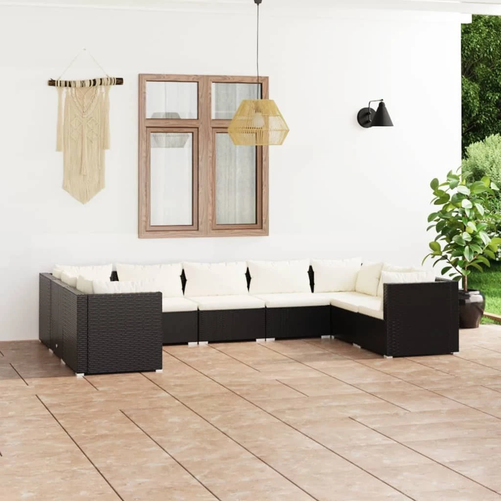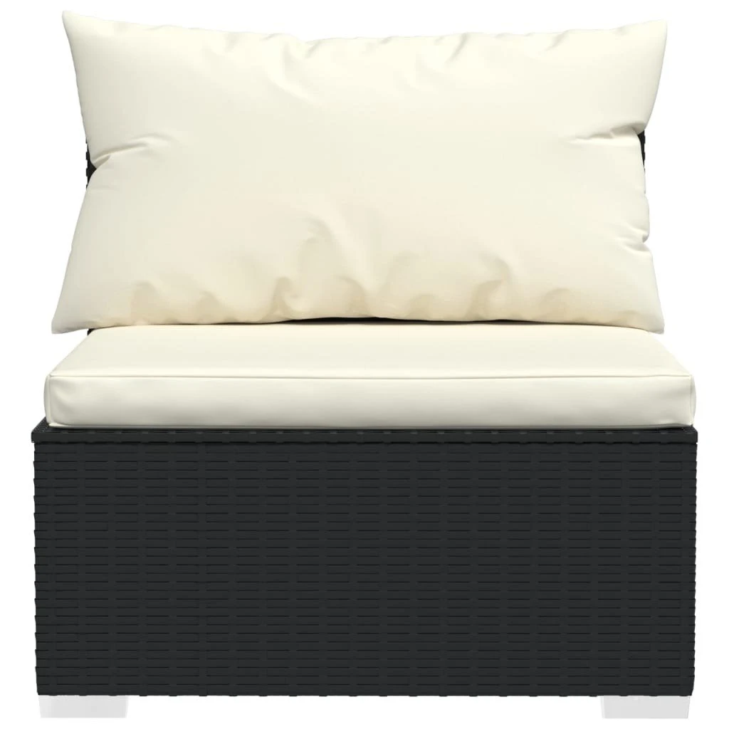 ¡Relájate y disfruta con amigos y familiares en tu jardín sobre este set de muebles de jardín de ratán sintético con cojines! Diseño modular: ¡Este diseño posibilita colocar el asiento en cualquier disposición o combinarlo con otros segmentos modulares para satisfacer tus necesidades!Material de primera calidad: El set de muebles de patio ha sido diseñado con ratán PE impermeable, por lo que es resistente y adecuado para usar a diario al aire libre.Estructura robusta: Este juego de muebles de exterior posee una robusta estructura de acero con recubrimiento en polvo y patas de cromado plástico, que son muy duraderas. Gracias a la construcción ligera, es fácil de mover.Cojines cómodos: Hechos de tela, los cojines con acolchado grueso son extraíbles y suaves al tacto, y te dan una mayor comodidad. Nota:Para prolongar la vida de tus muebles de exterior, te recomendamos que los protejas con una funda impermeable. Color: NegroColor de cojines: CremaMaterial: Ratán PE, acero con recubrimiento en polvo, plásticoMaterial del cojín/almohadón: Tela (100% poliésterSofá esquinero:Dimensiones: 70 x 70 x 60,5 cm (largo x ancho x altoProfundidad del asiento: 63 cmAltura del asiento desde el suelo: 30 cmDimensiones del cojín de asiento: 63 x 63 x 3 cm (largo x ancho x grosorDimensiones del almohadón de respaldo grande/pequeño: 63/53 x 40,5 cm (largo x anchoSofá central:Dimensiones: 70 x 70 x 60,5 cm (largo x ancho x altoProfundidad del asiento: 63 cmAltura del asiento desde el suelo: 30 cmDimensiones del cojín de asiento: 70 x 63 x 3 cm (largo x ancho x grosorDimensiones del almohadón de respaldo: 70 x 40,5 cm (largo x anchoRequiere montaje: SíLa entrega contiene:4 x Sofás de esquina5 x Sofás centrales9 x Cojín de asiento13 x Cojines de respaldo