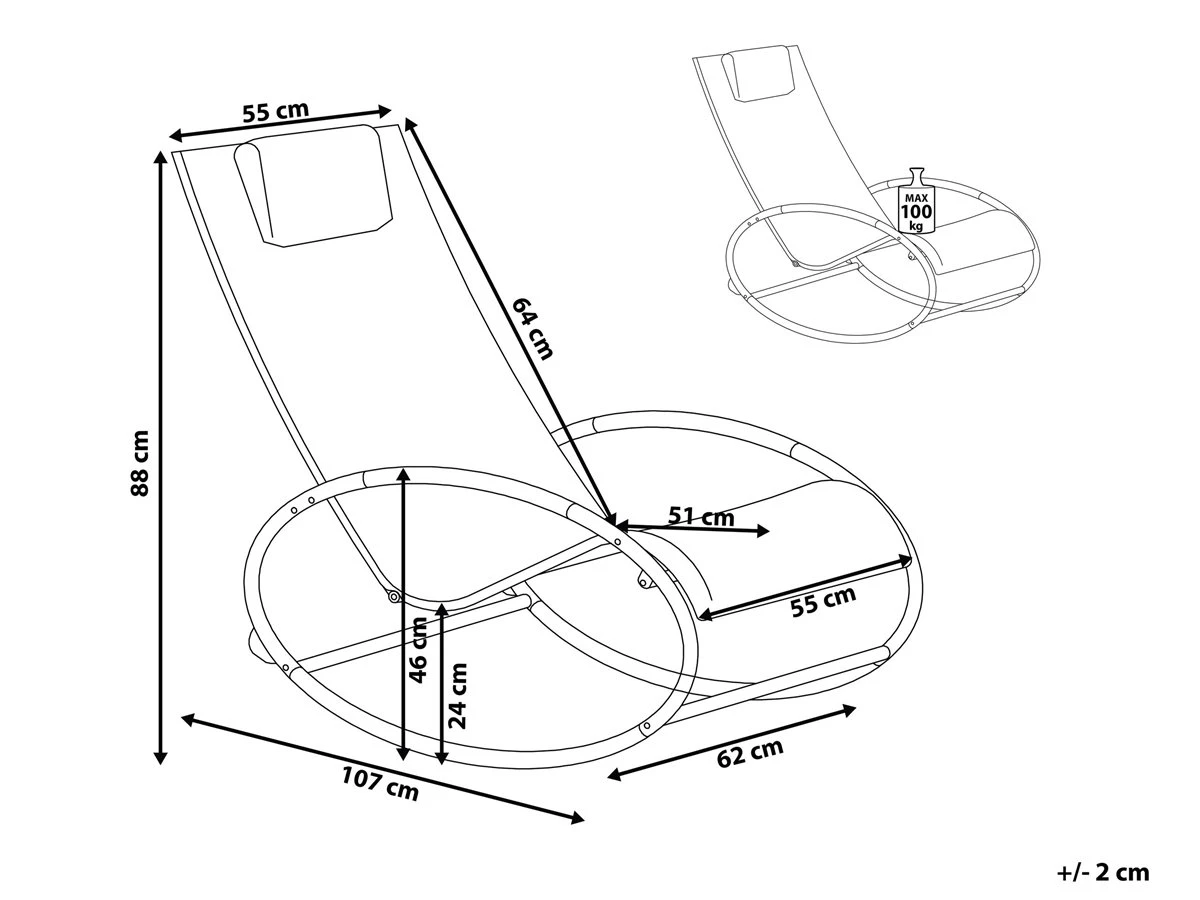 Silla de jardín mecedora. El estilo contemporáneo de esta silla de jardín mecedora se complementa con su diseño ergonómico. Los aros de acero con recubrimiento en polvo aportan dinamismo y permiten un balanceo suave. La silla incluye un reposacabezas extraíble y un revestimiento antideslizante en la base y en los reposabrazos. Detalles: Tipo de Producto: Tumbona Estilo: Moderno Color: Verde Tonalidad: Verde lima Tipo de material: Acero Material principal: Acero Material de las patas: Metal Material del asiento: Tejido Composición del Material: 100% Textil trenzado Apoyabrazo: Sí Acabado: Revestimiento en polvo Plegable: No Apilable: No Dimensiones: Altura del apoyabrazos: 46 cm Profundidad: 107 cm Altura del asiento: 24 cm Ancho: 62 cm Altura: 88 cm Superficie del asiento: 55×51 cm Peso: 7 kg Capacidad de peso: 100 kg La oferta incluye: 1 x Silla Ventajas: Agradable función de balanceo, Confort del asiento óptimo, Perfecto para todo tipo de exterior, Robusto marco resistente a la corrosión Información de montaje: Requiere montaje completo. 5-15 min. Información adicional: Para una mayor estabilidad y seguridad de uso, se recomienda verificar 2 semanas después de la instalación que el montaje del producto ha sido realizado de forma correcta. Revisa, al menos una vez cada 3 meses, que los tornillos estén bien apretados. El tejido textilene es una excelente alternativa para cualquier otro material utilizado para muebles de exterior. Es mucho más duradero, repelente a la humedad y resistente a las manchas que los sustitutos disponibles. Sin embargo, se aconseja ensamblar los muebles de textilene a temperatura de ambiente, ya que hace que el material sea más flexible y fácil de montar. La baja temperatura puede hacer que el textilene se encoja y dificulte el ensamble de los muebles. Texto de resistencia: Gracias a su resistencia al agua, puedes utilizar el producto al aire libre y dejarlo a la intemperie durante lluvias ligeras. Si no es posible guardarlo en un lugar cerrado y protegido, recomendamos utilizar una funda protectora. La exposición prolongada a la humedad puede provocar daños en el mueble. Resistencia: Agua ligera / humedad Consejos de mantenimiento: Textil trenzado: 1.Aspire con un accesorio adecuado 2.Limpiar con champú seco y una esponja húmeda o un limpiador suave 3.Cuando no esté en uso, manténgalo en un lugar limpio y seco para protegerlo de las condiciones atmosféricas. Acero: 1.Quite las tapas protectoras con regularidad para que salga todo el líquido, déjelas secar y utilice un spray anticorrosión si es necesario 2.Limpiar con detergentes suaves 3.Los muebles de acero y sus elementos no deben exponerse al agua. De lo contrario, existe la posibilidad de que el agua oxidada salga de las tuberías del marco 4.Cuando no estén en uso, los muebles deben guardarse en el interior o bajo una cubierta protectora 5.Para aumentar la durabilidad del artículo, manténgalo seco y recuerde la limpieza regular 6.Cualquier daño a la capa de pintura exterior debe protegerse de la humedad 7.Para garantizar la protección contra la corrosión, evite los limpiadores alcalinos o ácidos. Después de limpiar, secar bien.