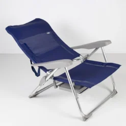 - Materiales: tejido de textileno reforzado 2×1 (resistente, transpirable y fácil de limpiar, costuras termoselladas, estructura de aluminio (antioxidante y duradera y reposabrazos de plástico resistente