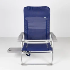 - Silla de playa plegado extraplano color azul marino con asas de transporte, mesa extraíble y cojín incorporados Aktive Beach
