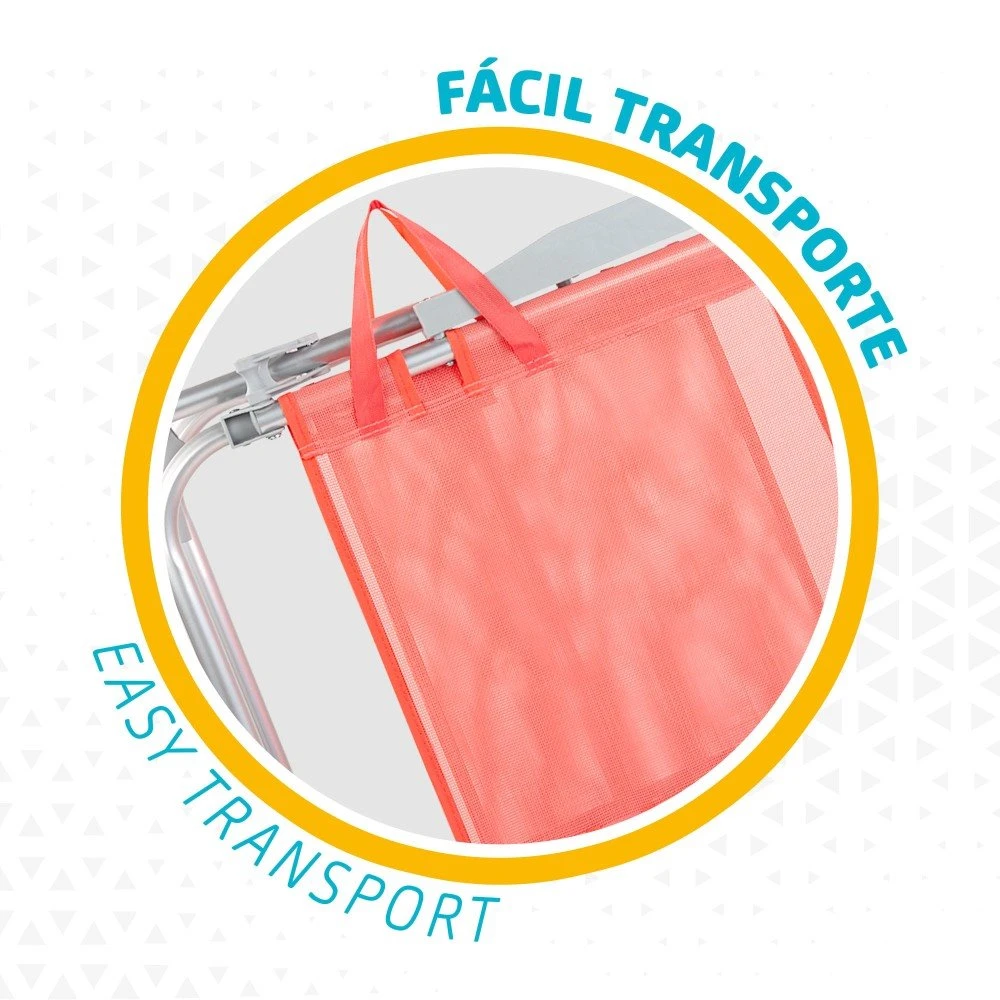 - Resistente: fabricada con aluminio y textileno, soporta un peso máximo de 100 kg