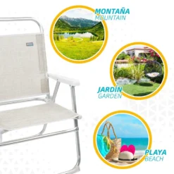 - Silla plegable Aktive Beach, medidas 56x50x88 cm, estructura fija (respaldo no reclinable, ideal para ir a la playa o de camping