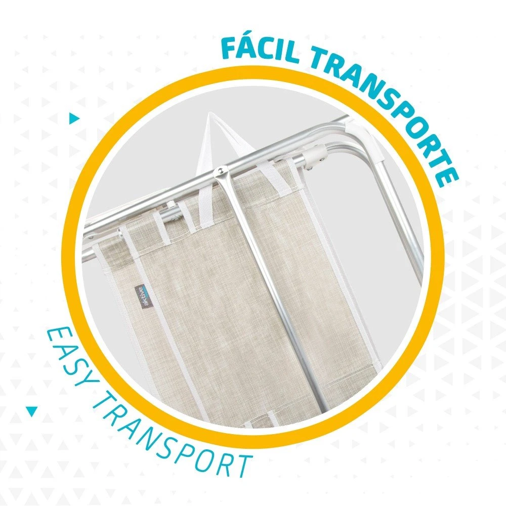 - Resistente: fabricada con aluminio y textileno, soporta un peso máximo de 100 kg