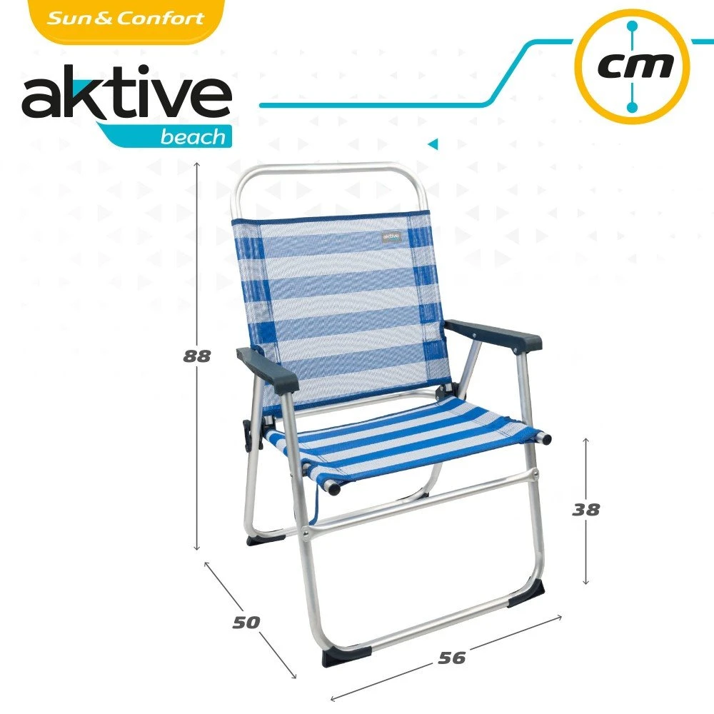 - Silla plegable Aktive Beach, medidas 56x50x88 cm, estructura fija (respaldo no reclinable, ideal para ir a la playa o de camping