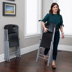 - Extras: plegado tipo tijera para almacenaje compacto, la parte superior del respaldo lleva un asa incorporada, patas con topes de goma protectores