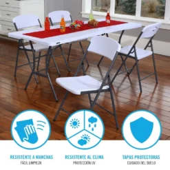 - Material resistente a las manchas y fácil de limpiar, esta silla está pensada para uso exterior e interior, ideal para completar una mesa plegable