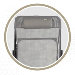 - Multiposición: su respaldo con cojín se puede colocar hasta en 3 posiciones diferentes con mayor o menor inclinación